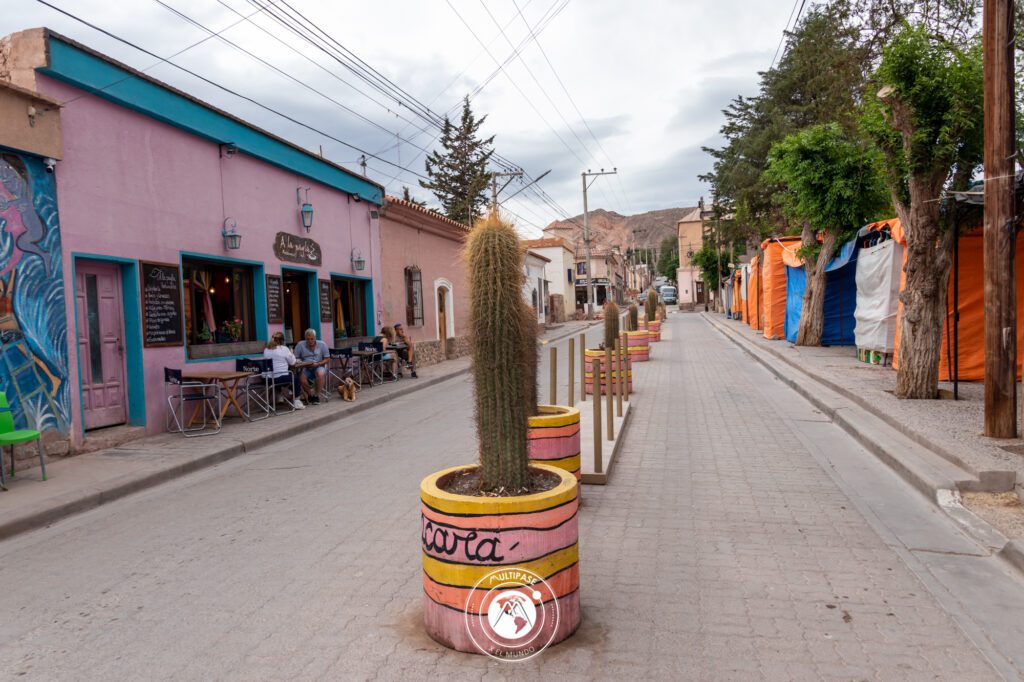 Una vez en Tilcara como el sol aún no se ocultaba fuimos a caminar un poco más por esta bella ciudad típica del norte, como la caminata nos dio hambre o esa era la excusa compramos unas tortas rellenas en el puestito de nuestro amigo que le habíamos prometido pasar. Aprovechamos para seguir sacando bonitas fotos en este lugar y simplemente sentarnos en su plaza a disfrutar su tranquilidad y conectar con la montaña. Luego volvimos al hotel ya que teníamos la cena incluida y donde pudimos disfrutar un poco de música local, con baile incluido.