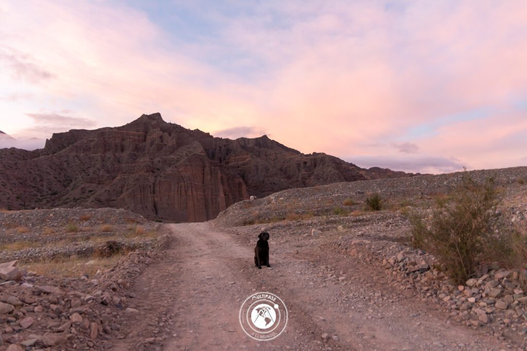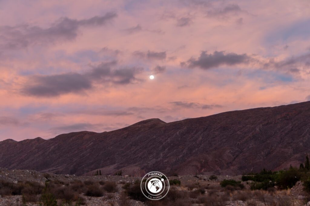 Llegamos a Tilcara y como todavía había sol, nos acercamos hasta la zona del pucara que si bien sabíamos que estaba cerrado queríamos admirar un poco, aunque sea de lejos. Y el paseo estuvo entretenido bordeando el poblado cerca de la ruta mientras caía el sol y se ocultaba en las montañas, la luna se asomaba y encontrarnos ahí en esa inmensidad fue maravilloso y nos permite imaginar cómo vivían los pueblos originarios en esos tiempos y porque su amor por la naturaleza, algo que la “civilización” a olvidado.