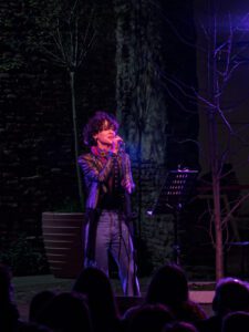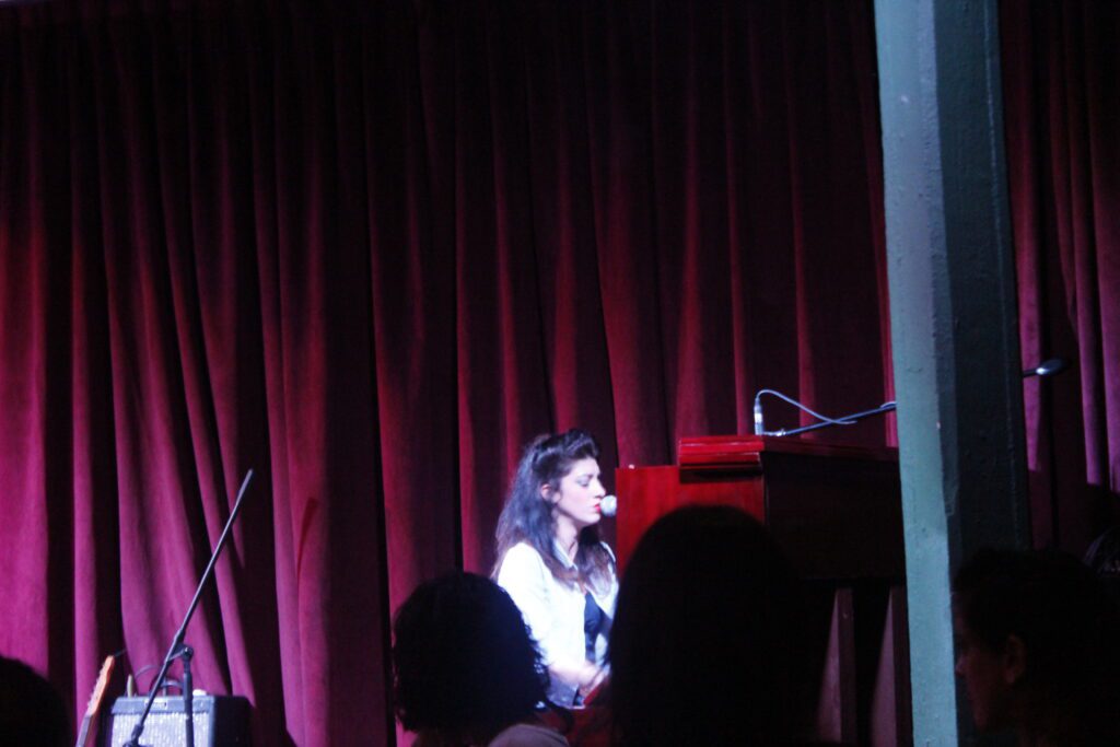 En la puerta fumando un pucho estaba Romina Gaetani, unas de las artistas que iba a participar como invitada en la noche. Una vez dentro me busqué un lugar y me pedí un vermut como para estar en sintonía. Cambié lugar, creo que con la mamá de Ignacia y me senté en unos almohadones en el suelo, lo que me permitió estar más cerca y apreciar el recital desde otro ángulo. Allí se acercó a saludar Gime que ya estaba por comenzar su show, se la notaba feliz.